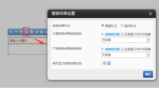 站内搜索中搜索结果的添加设置(弹窗形式)